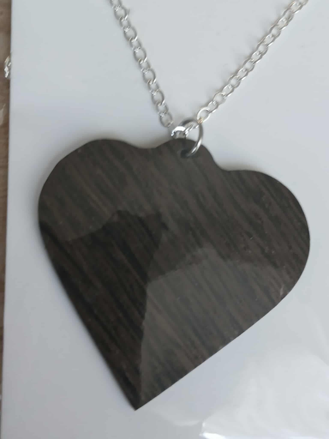 Pendentif cœur en chêne des marais – bijou artisanal en bois