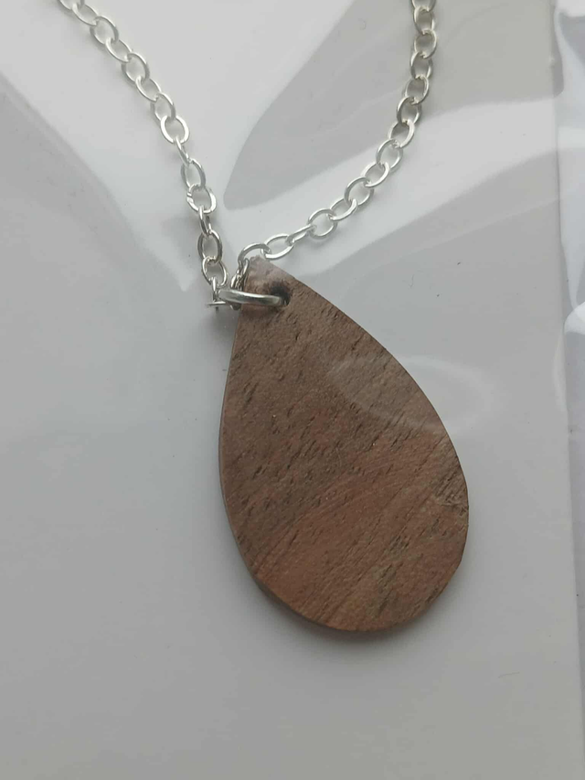Pendentif goutte en noyer – bijou artisanal en bois